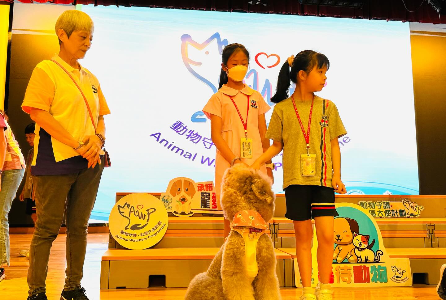 港島總區「動物守護 • 社區大使」計劃的義工大使帶領一班義工犬,包括芊芊、豆豆及Toffee 於七月四日(星期四)到本校進行講座。 職員先向同學講解守護及與動物相處的方法,接着是零距離親親義工犬環節,同學們嘗試抱抱、牽引動物。最後,到台上分享是次活動感受,加深對「守護動物,由愛出發」的概念。