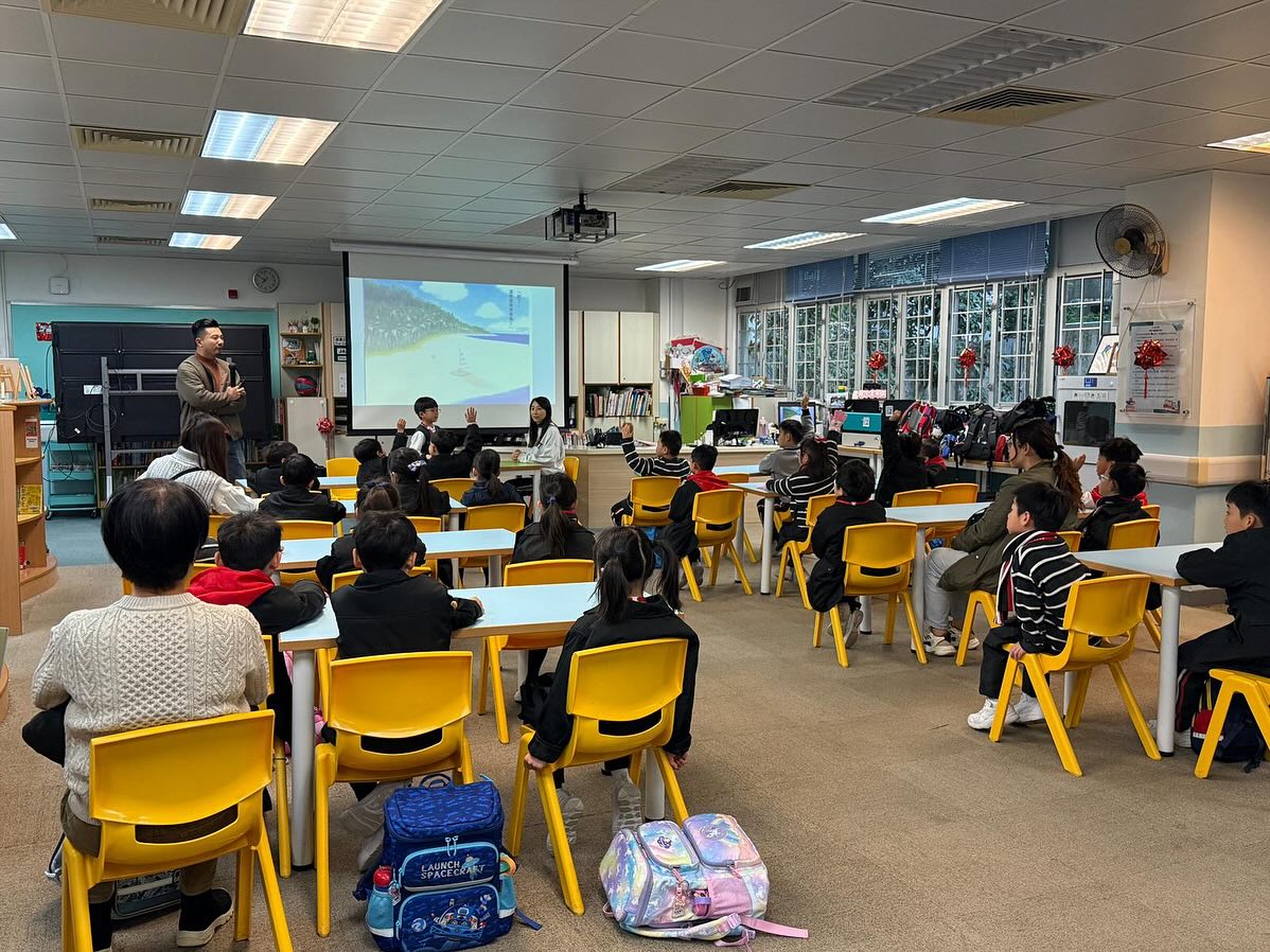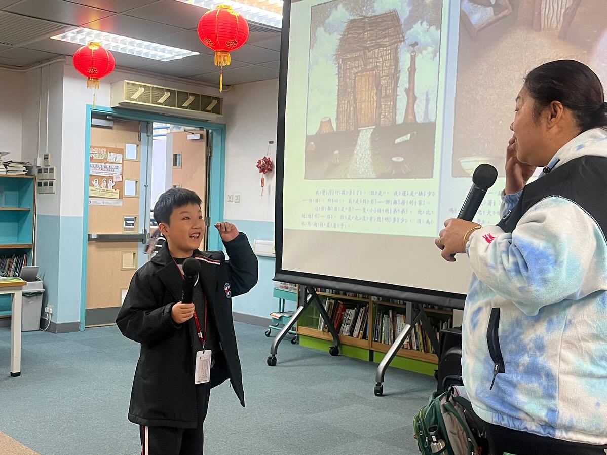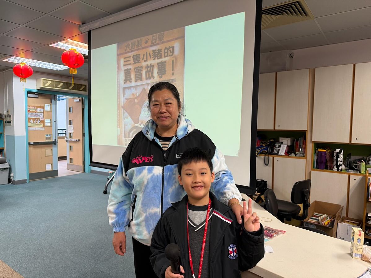 2B易子樂與婆婆則於1月16日(星期五)進行親子閱讀分享,他們帶來別具創意的改編《三隻小豬的真實故事》,並貼心地與同學們分享豬肉乾。