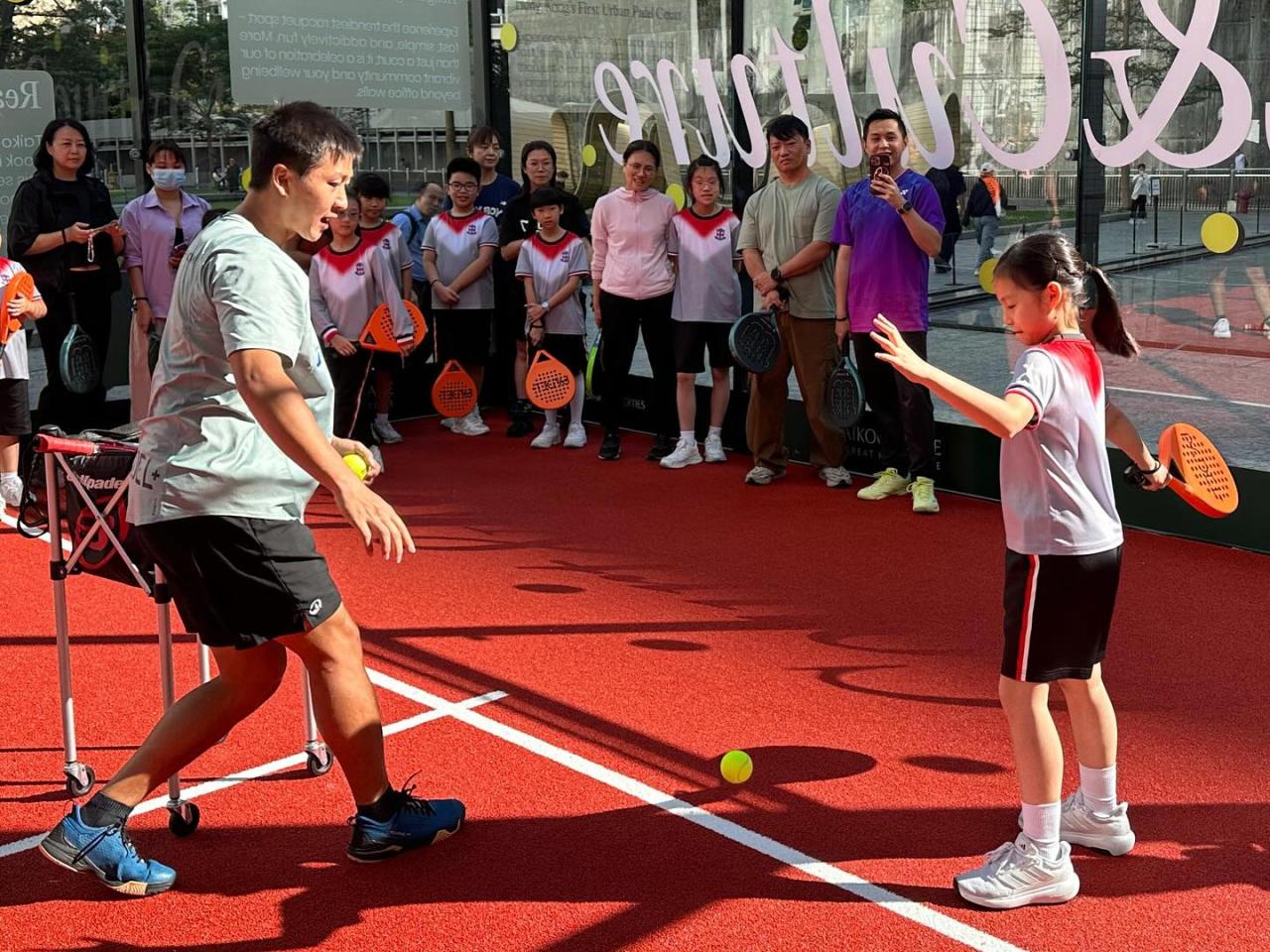 本校學生及家長於11月14日(星期五)到太古坊板網球場參加板網球親子體驗工作坊。工作坊期間,大家學習這項新興運動的動作技巧及比賽規則。這項新興運動以隊制形式進行,能加強親子之間的溝通、合作,有助建立正向親子關係。