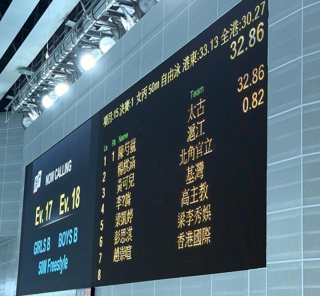 女子丙組50米自由泳冠軍: 4E陳芍嵐 (破大會紀錄)