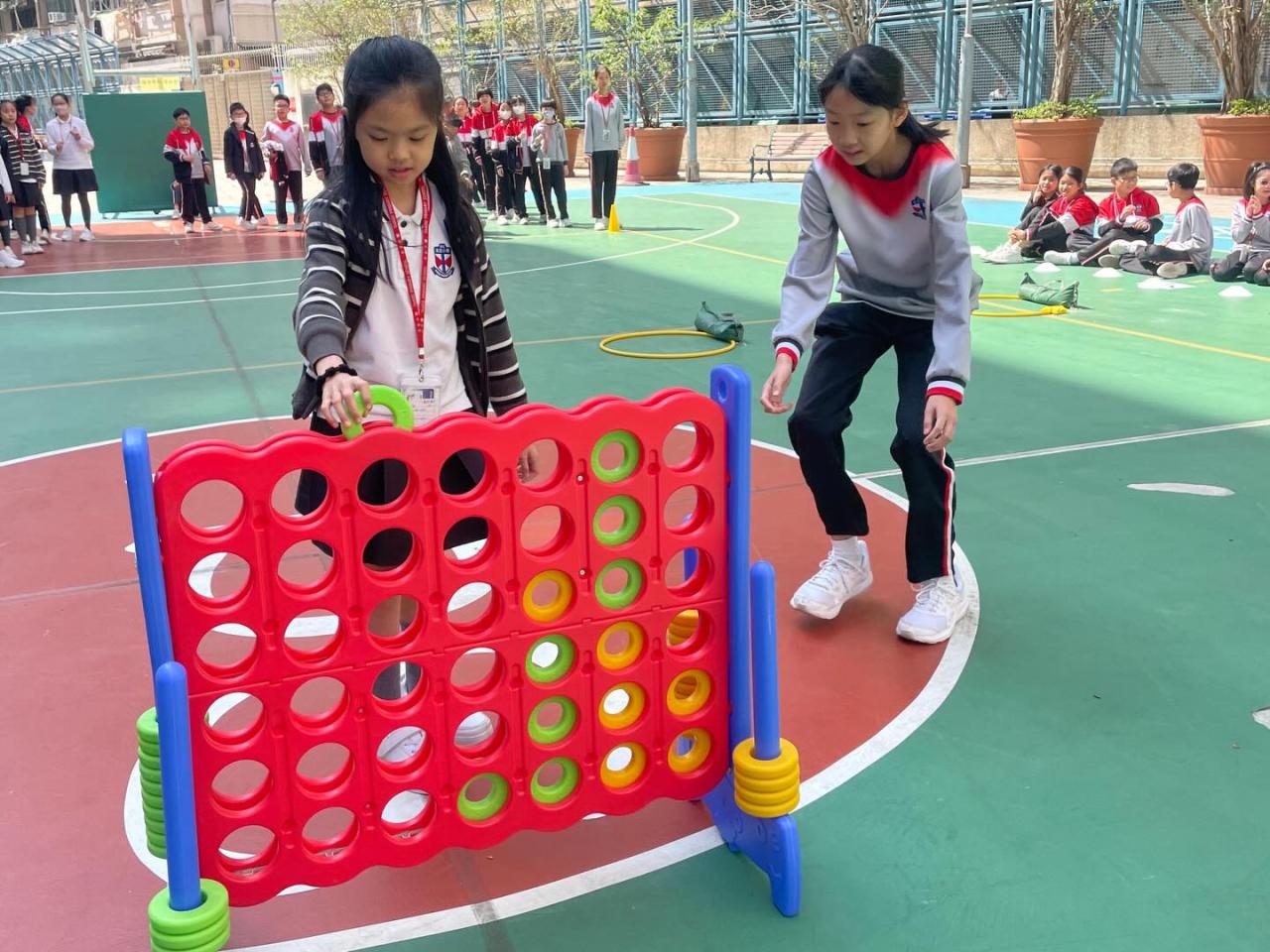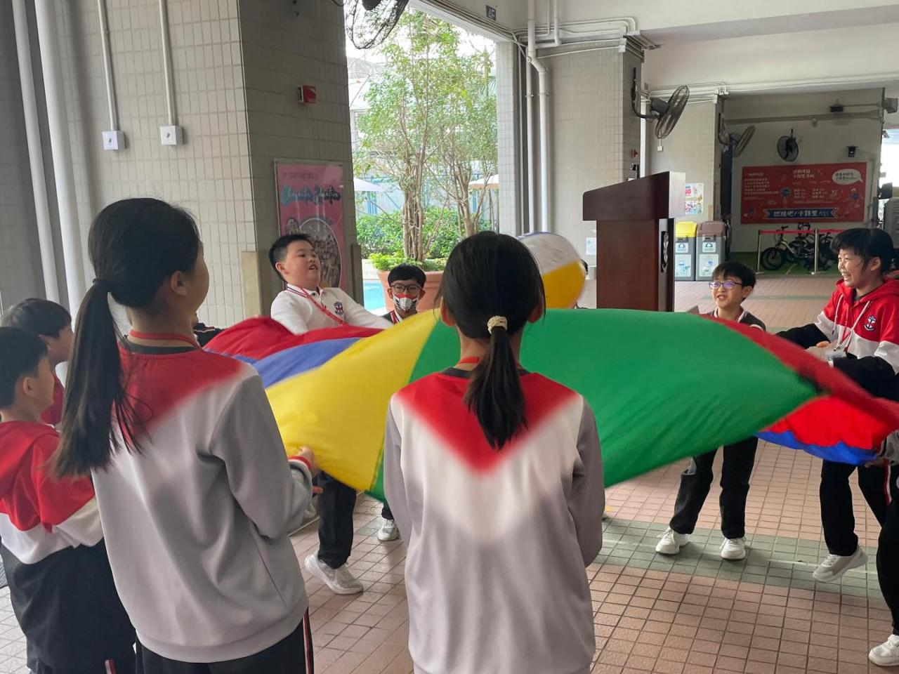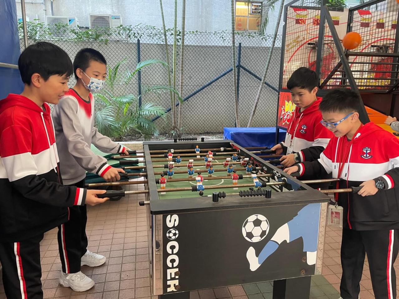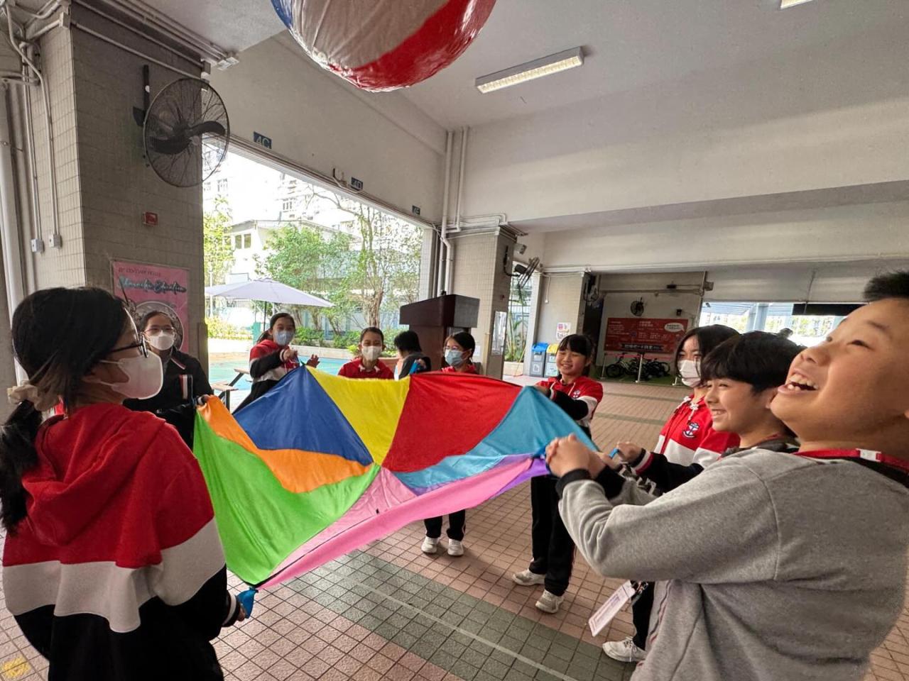 三至六年級同學透過參與體育活動及社會福利署舉辦的「愛自己」攤位遊戲,盡情放鬆 。