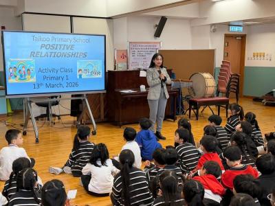 一至二年級同學則參與了英普兩語活動。透過輕鬆的語境互動,學習如何建立與他人的「正向關係」。