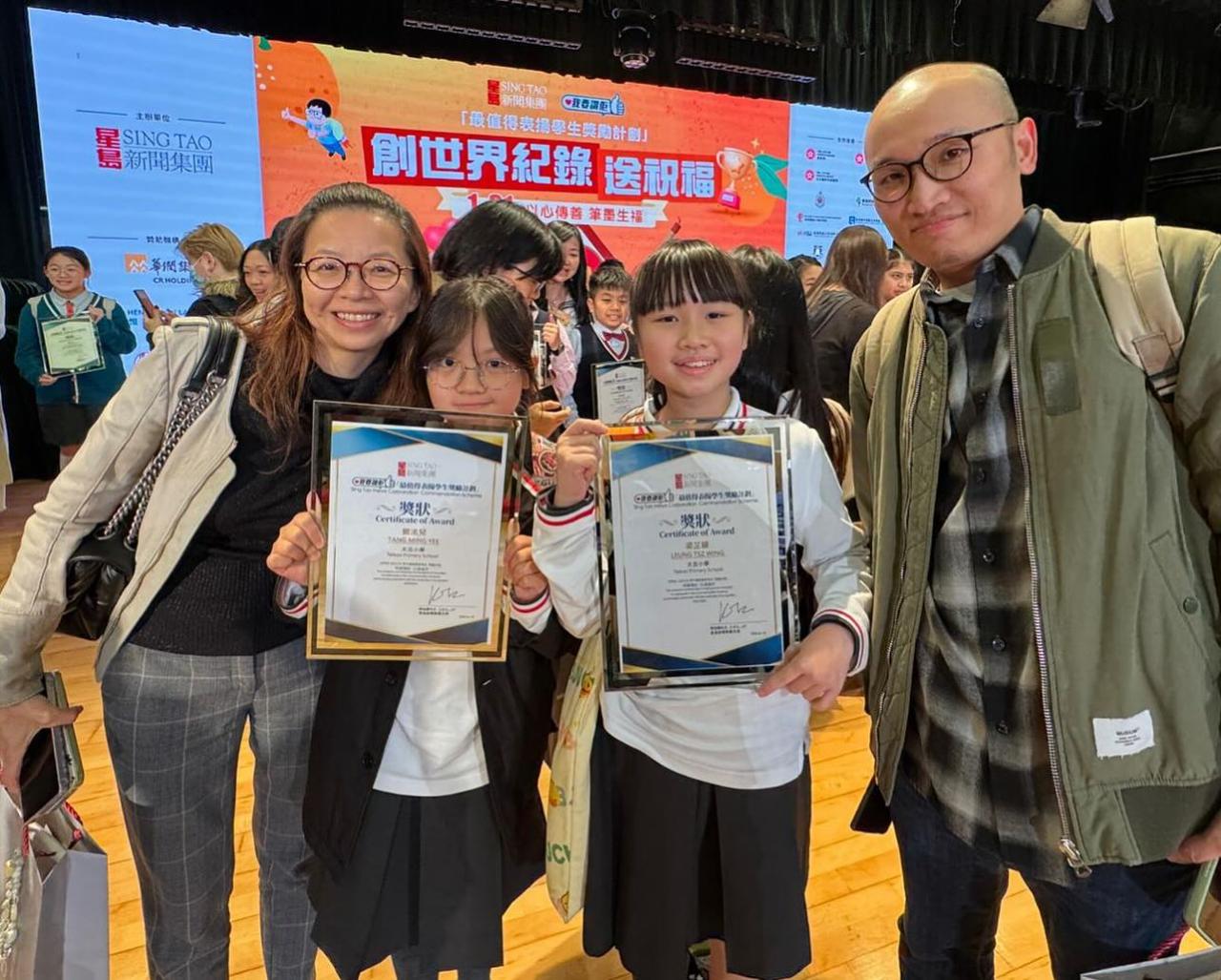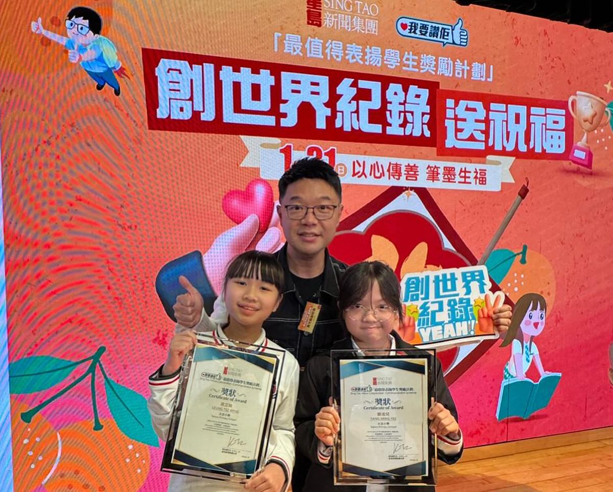恭喜5A鄧洺兒及6B梁芷穎於星島新聞集團舉辦的《我要讚佢》最值得表揚學生獎勵計劃中,憑藉卓越的表現獲選為「最值得表揚學生」,於1月31日(星期六)出席了該計劃的年度旗艦活動,主題為「以心傳善 筆墨生福 共創世界紀錄」。