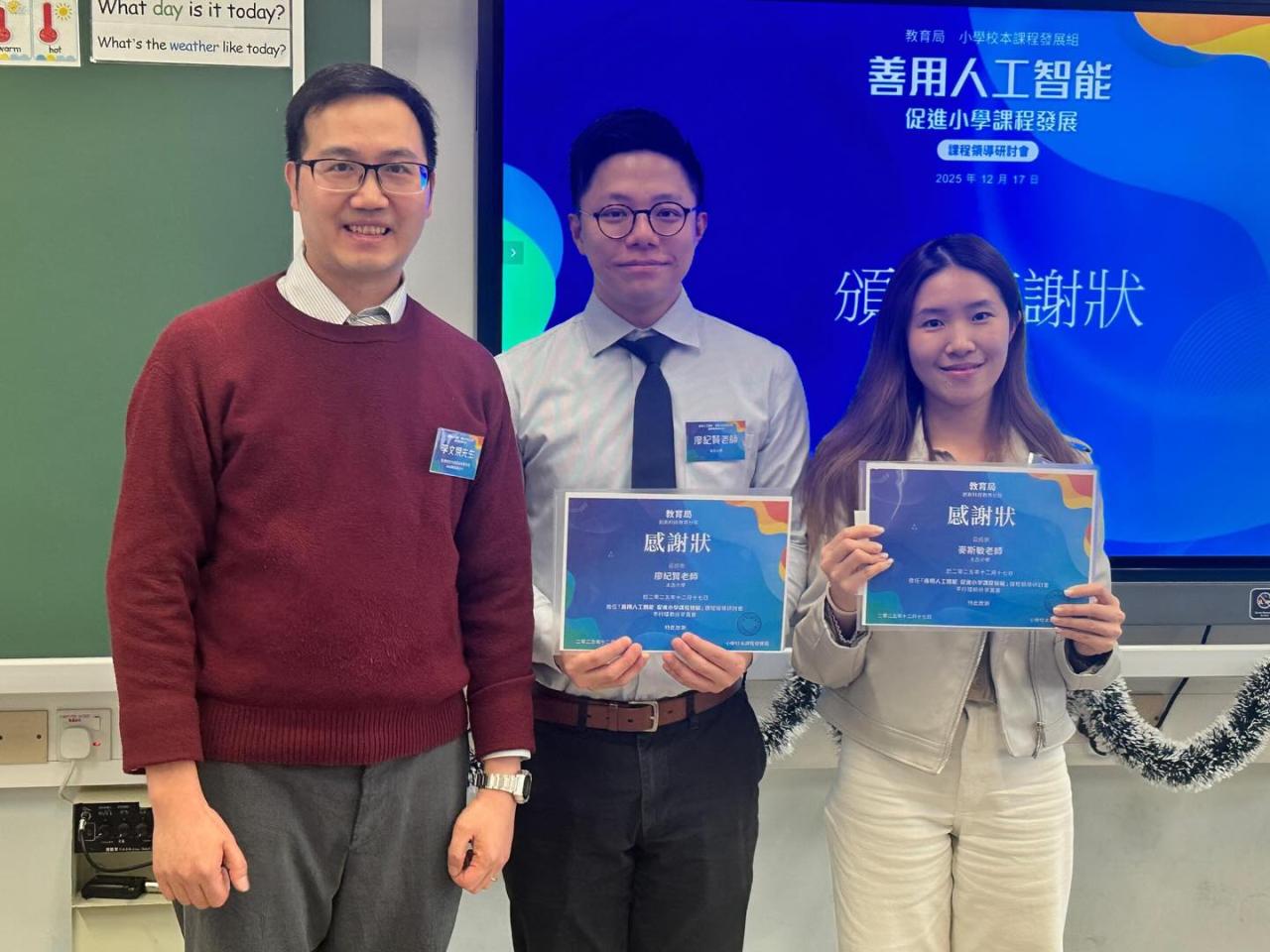 本校人文科團隊獲教育局邀請,於12月17日(星期三)擔任「善用人工智能促進小學課程發展」課程領導研討會的分享講者。