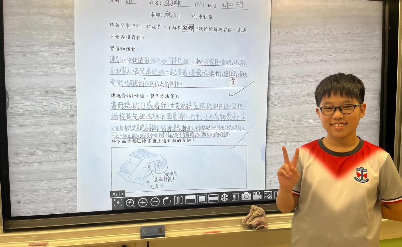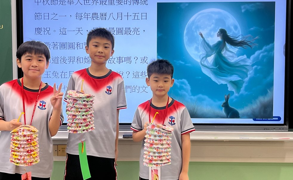 本校於中秋節期間舉辦了一系列富有教育意義的活動,讓學生從多角度認識傳統節日與文化。中文科於各級設計不同課程,如創意月餅廣告、「中秋小記者」(訪問親人童年如何慶祝中秋)等。此外,早會環節由高年級學生分享中秋節與文化安全及社會安全的關係,加深大家對節日背後價值與意義的了解,提升文化素養與公民意識。