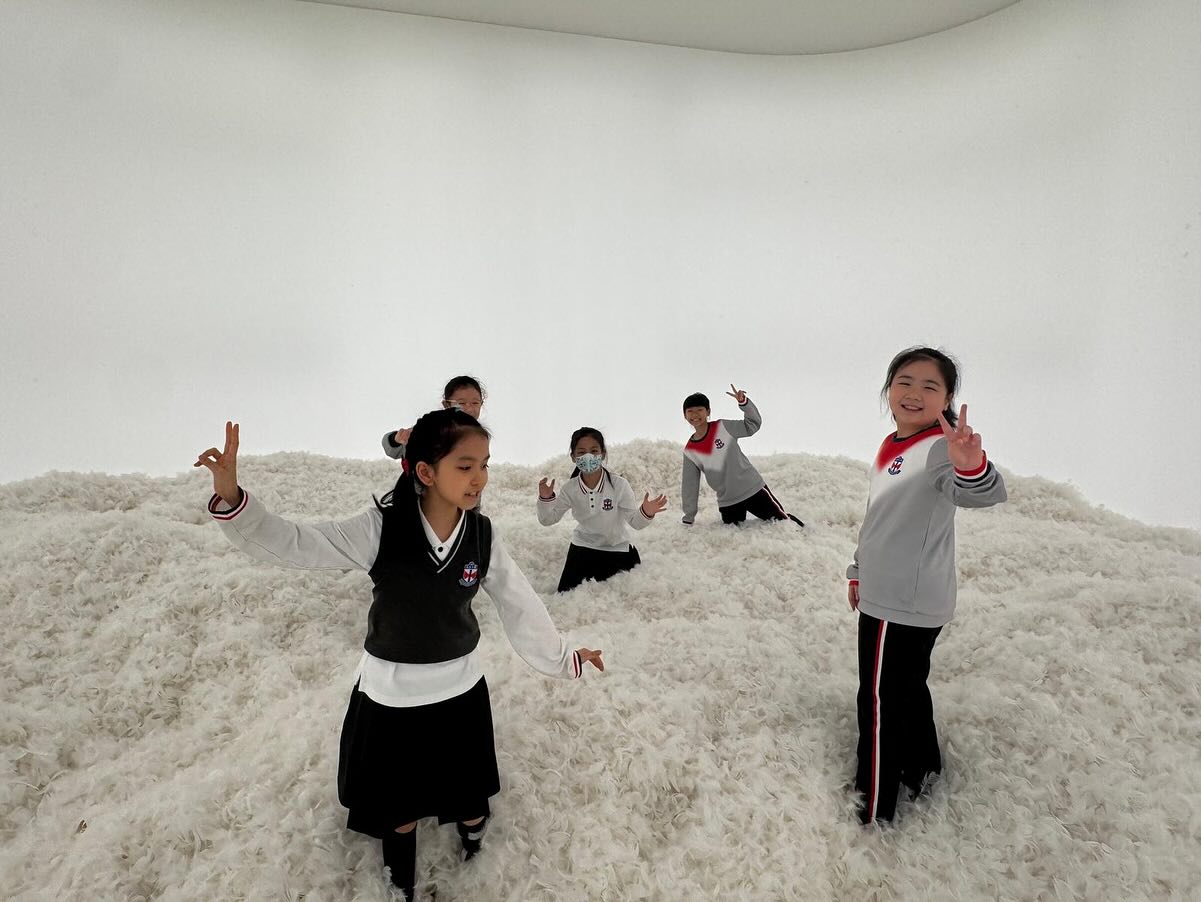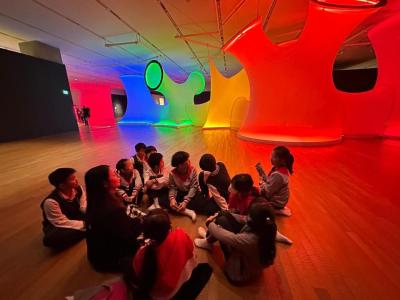 在導賞員的帶領下,同學們全身心沉浸在藝術家構建的奇幻空間中,從鋪滿羽毛的潔白房間到七彩繽紛的光譜通道,同學不只是「觀看」藝術,更是「身臨」其中,親身體驗互動式藝術裝置帶來的視覺與觸覺衝擊。活動讓同學們突破傳統的觀展經驗,透過五感體驗與作品對話,並透過與同學交流及分享,反思當代藝術的多樣性及女性藝術家的創作力量,獲得了一次啟發創意思維及擴闊藝術視野的寶貴學習經歷。