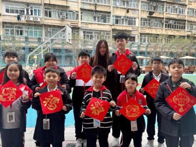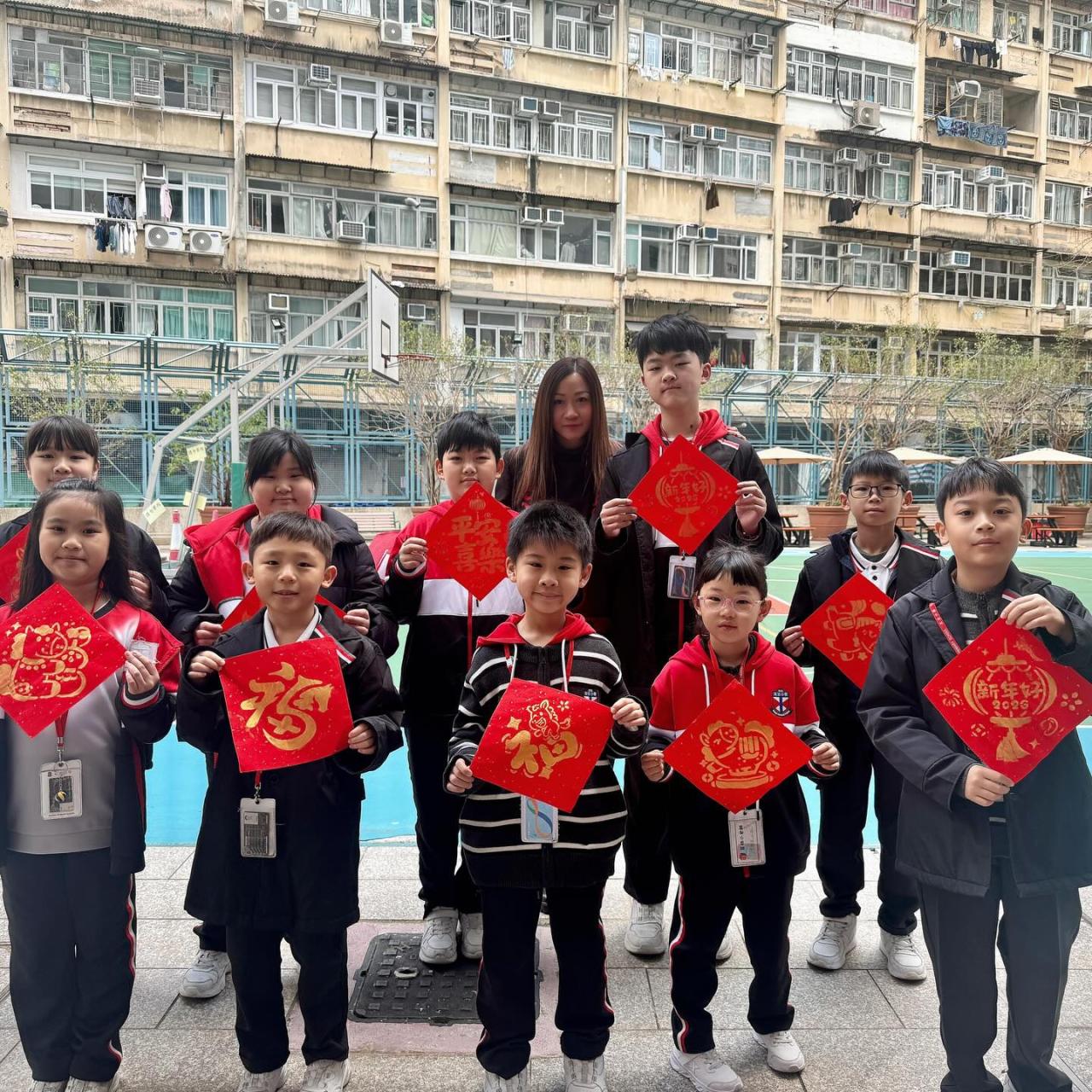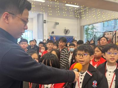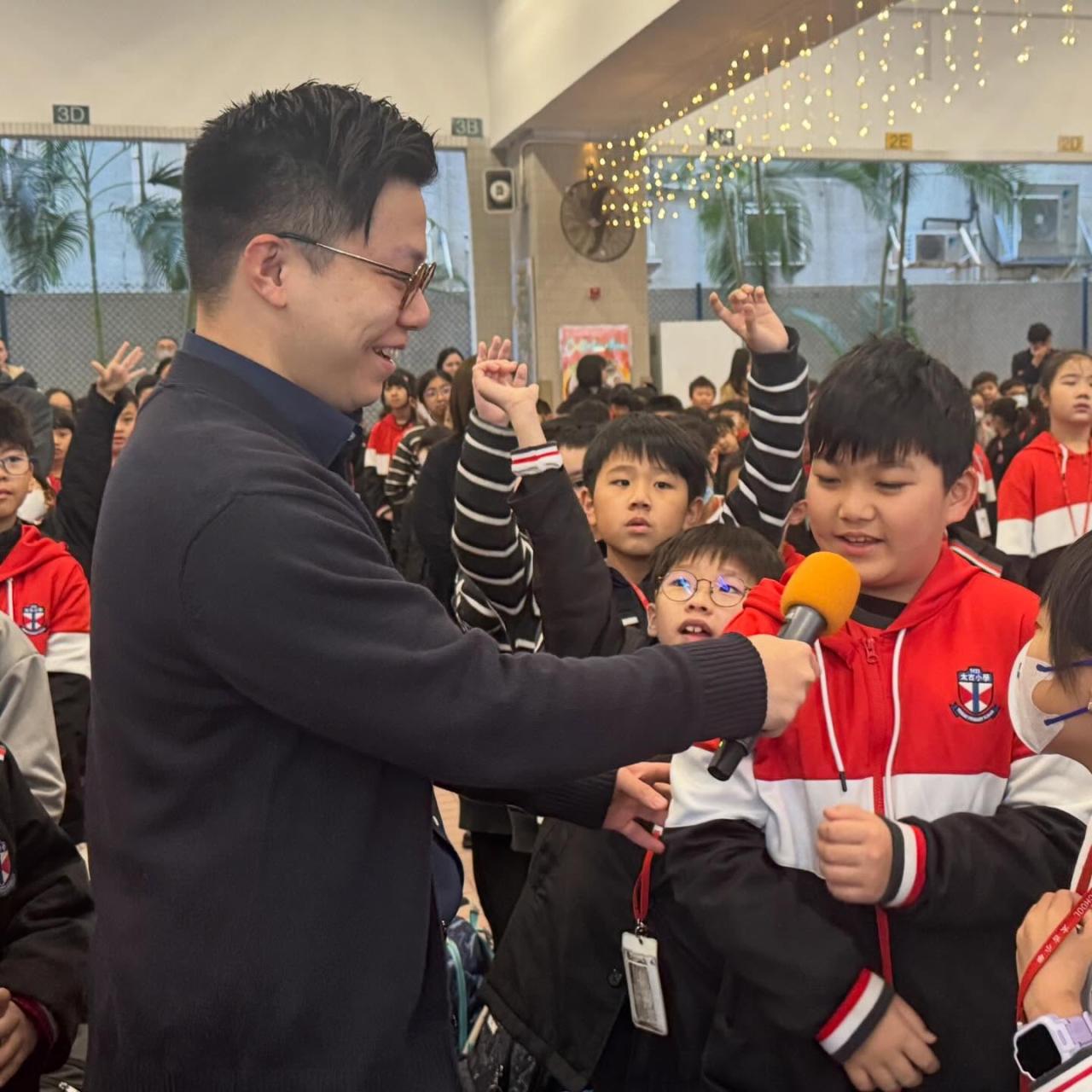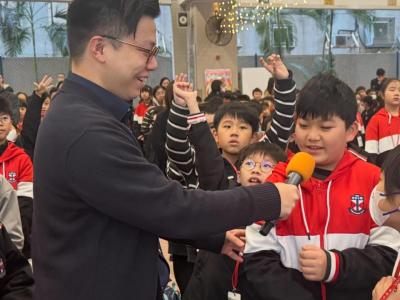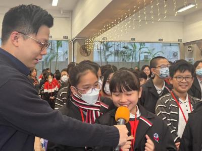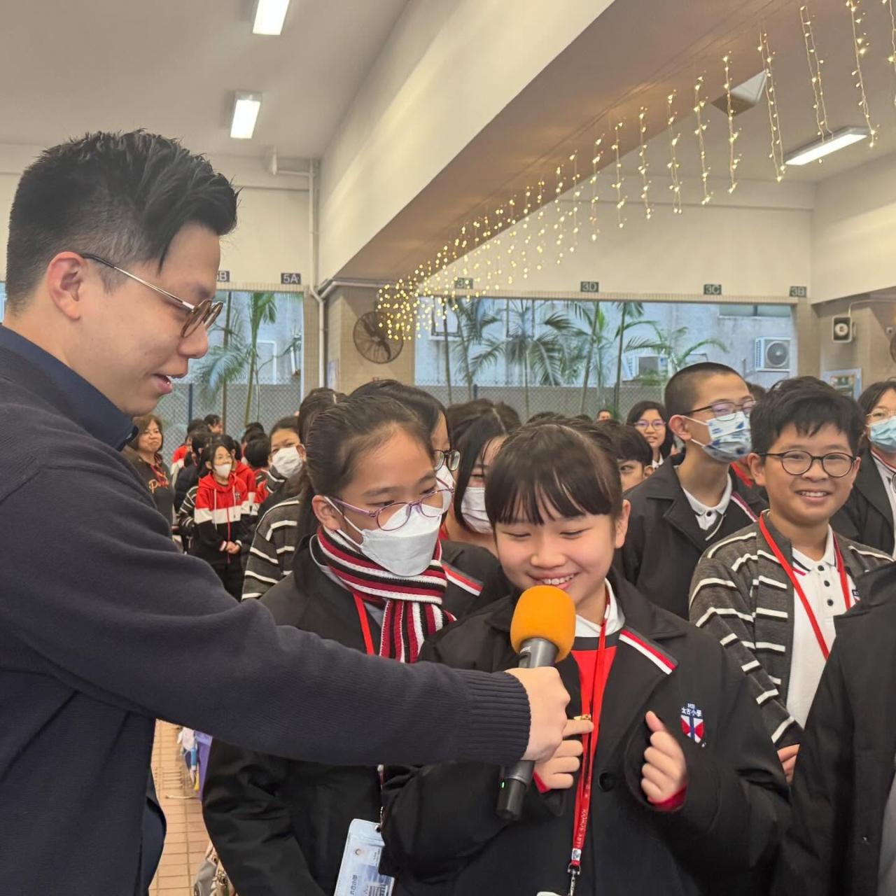 葉校長於2月9日(星期一)早會時段與同學分享農曆新年的習俗,並進行問題遊戲比賽,答對問題的同學均獲得由葉校長親手製作的揮春。