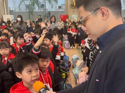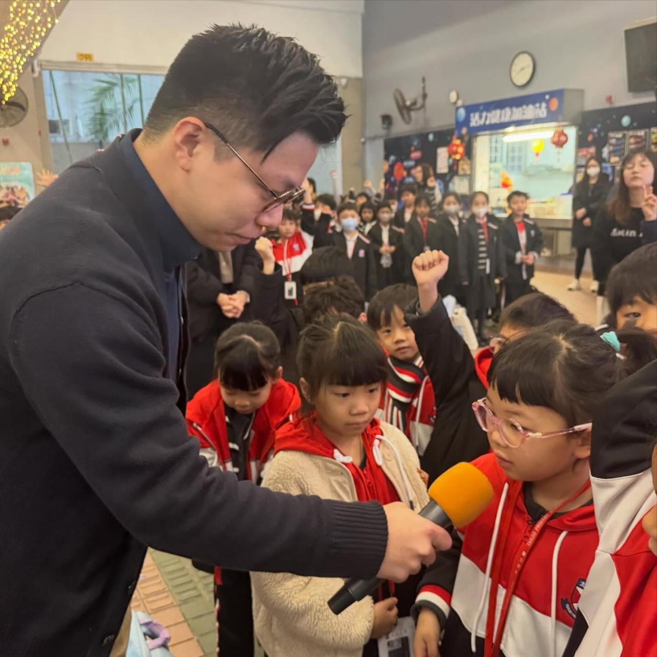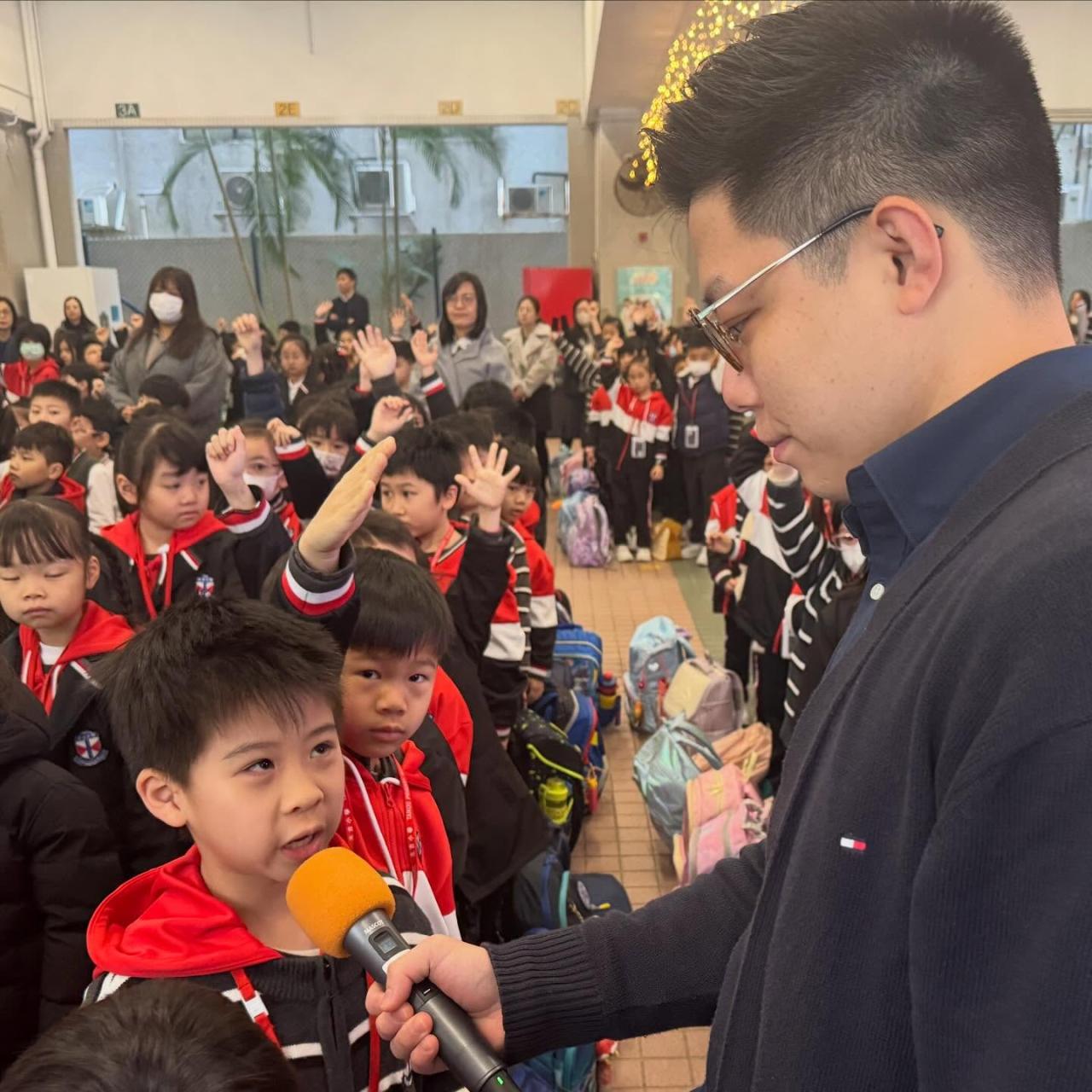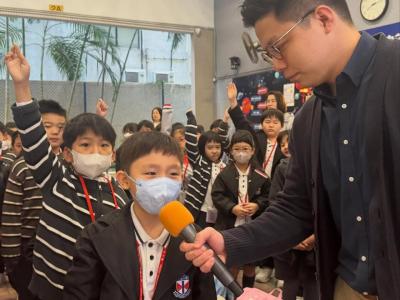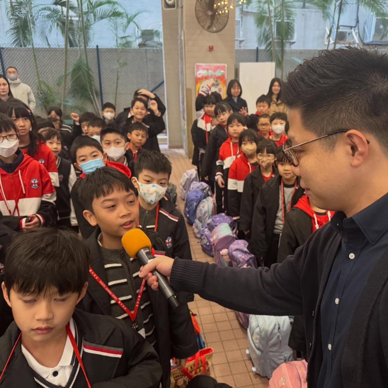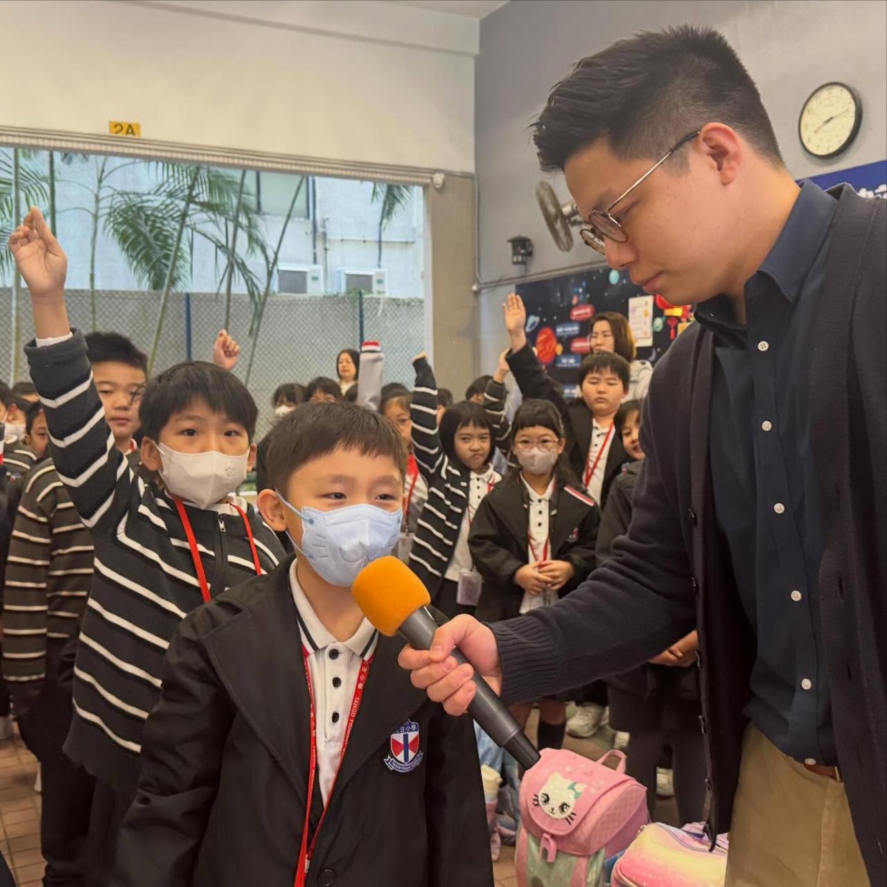 葉校長於2月9日(星期一)早會時段與同學分享農曆新年的習俗,並進行問題遊戲比賽,答對問題的同學均獲得由葉校長親手製作的揮春。