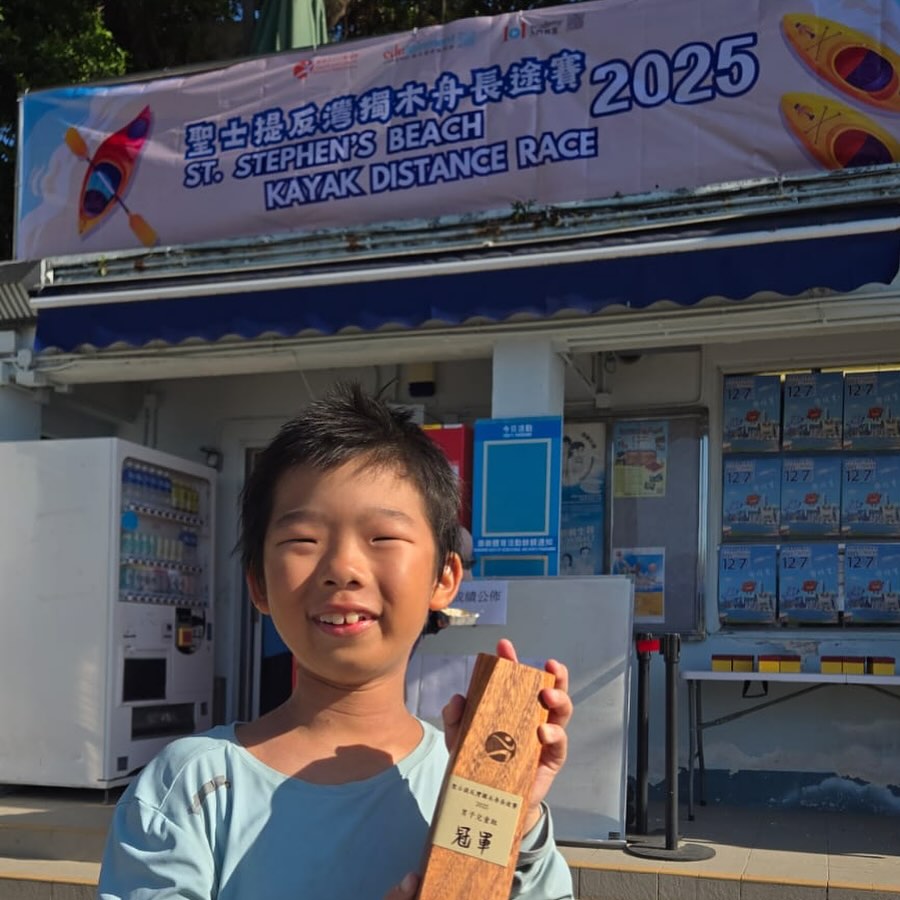 3B 廣瀨信一同學於11月16日(星期日)參加康文署聖士提反灣獨木舟長途賽2025,榮獲 獨木舟長途賽 (男子兒童組): 冠軍。恭喜獲獎同學,欣賞信一為爭取更好的成績而努力,成就更好的自己。