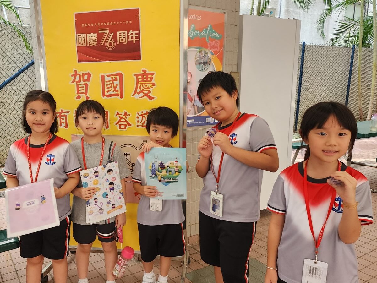 為慶祝中華人民共和國成立76週年,本校於9月29日(星期一)進行了升掛國旗及奏唱國歌儀式。學生在國旗下講話中,向師生介紹國慶日由來、國家近年發展的成就及中國運動員的卓越表現。此外,本校更舉辦問答比賽,讓學生更深入認識國家的歷史,加深對祖國的了解。