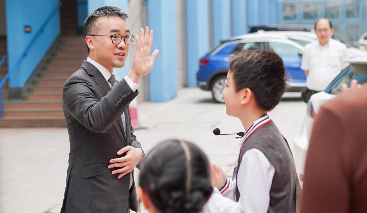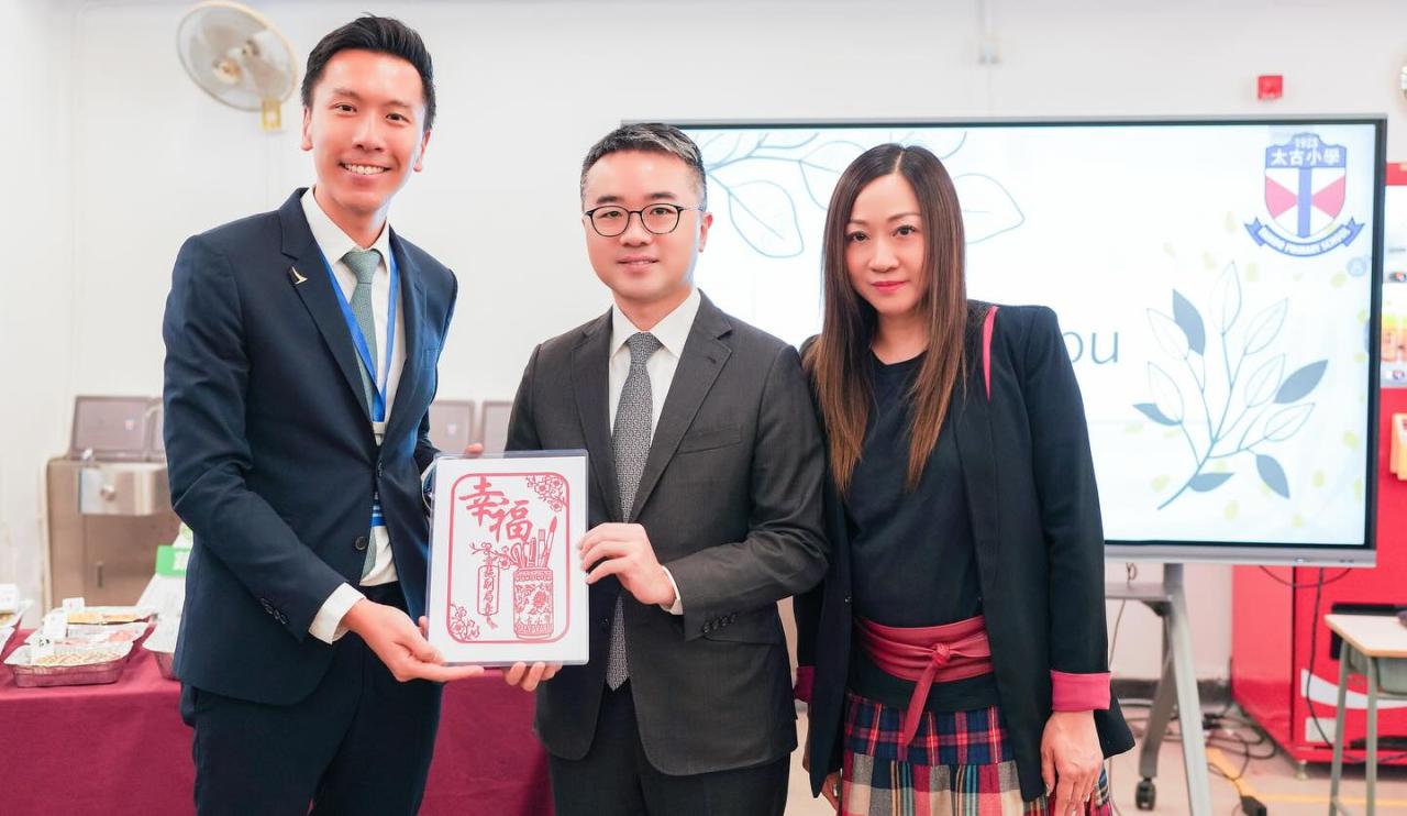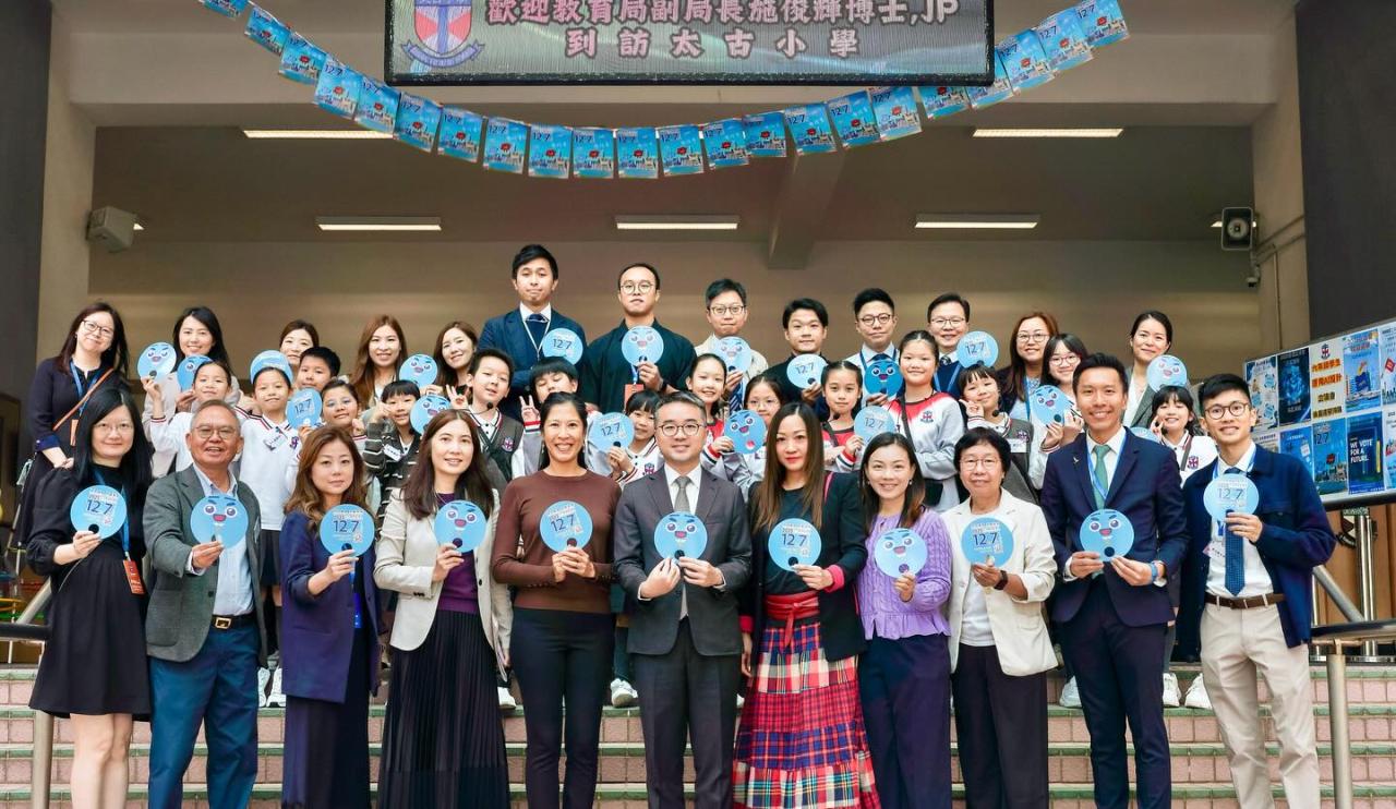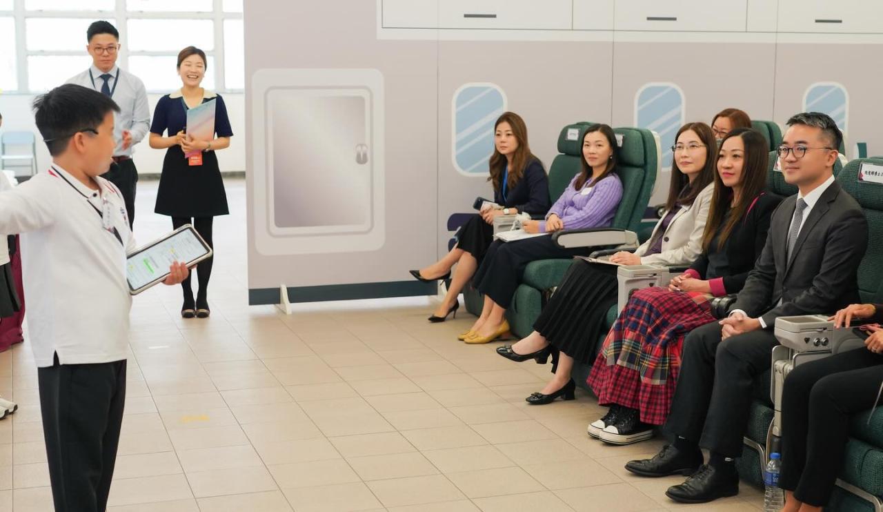 教育局副局長施俊輝博士JP於2025年11月18日(星期二)到訪本校,了解本校數字教育、正向教育及創新教育的推行情況。其後,由學生代表陪同施副局長及各位嘉賓參觀數字教育展覽,並於國泰X太古小學模擬機艙中體驗二年級常識科「太」惜食校本課程,隨後遊覽校園。