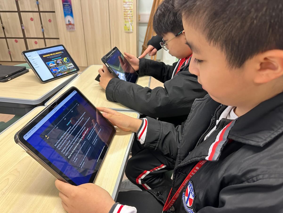 在課堂上,外籍英語教師 與學生共讀有關地球生命多樣性的圖書 ,並引導他們討論可採取的行動以拯救香港水域 。隨後,學生們運用人工智能 及各類設計軟件 ,創作出以環境保護為主題的海報 ,展現了他們的創意 與責任感。