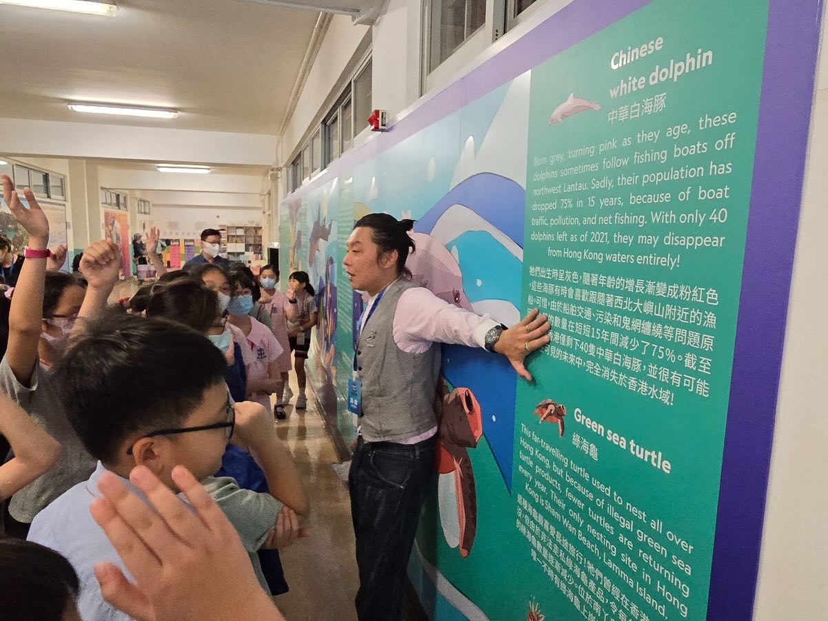本校英文科與《國家地理雜誌》合作 ,在校內製作壁畫 ,帶領學生走進香港珊瑚礁 、海岸 與城市 的故事,讓他們深入認識海洋生物多樣性 及其背後的文化意義。