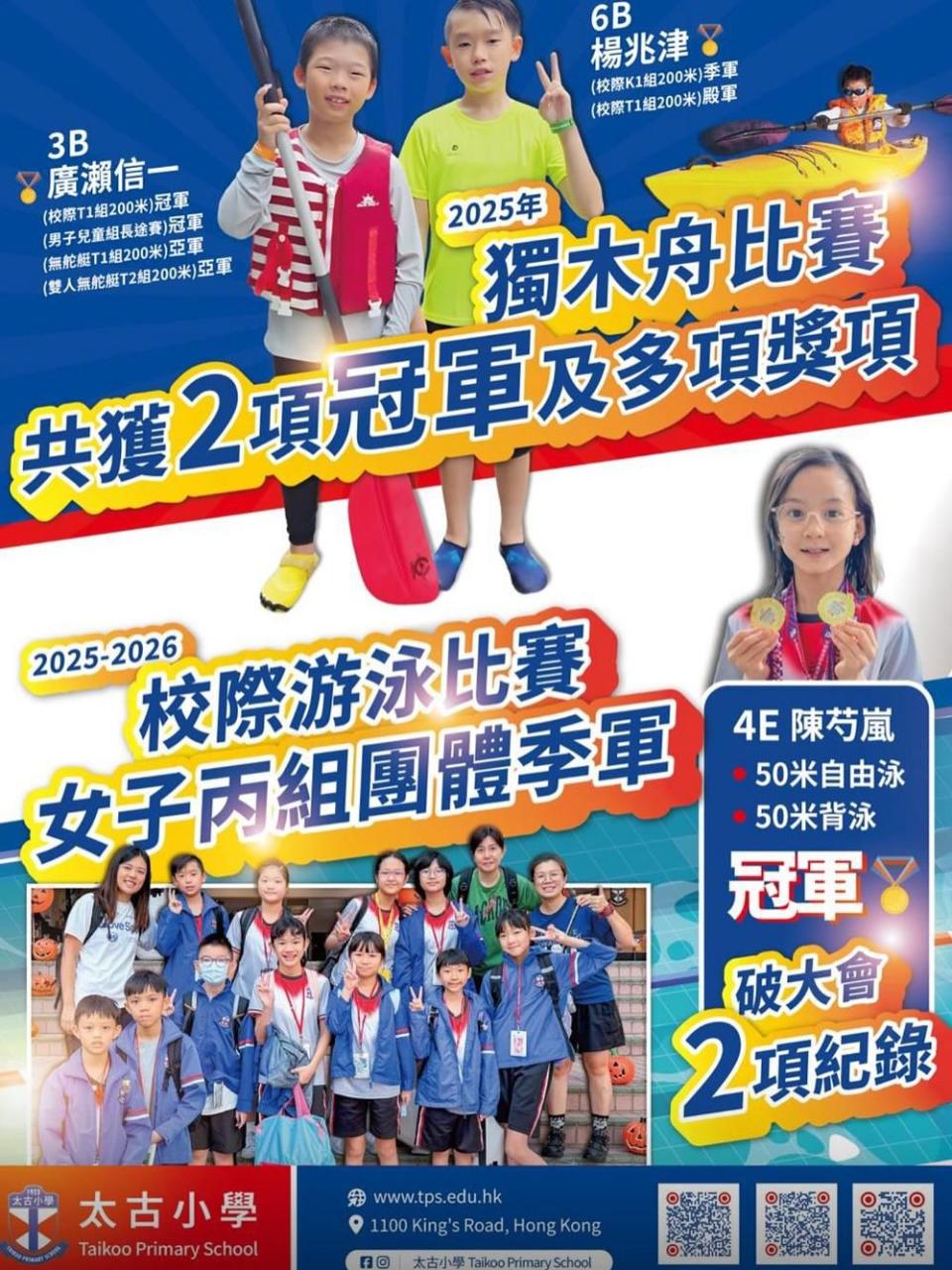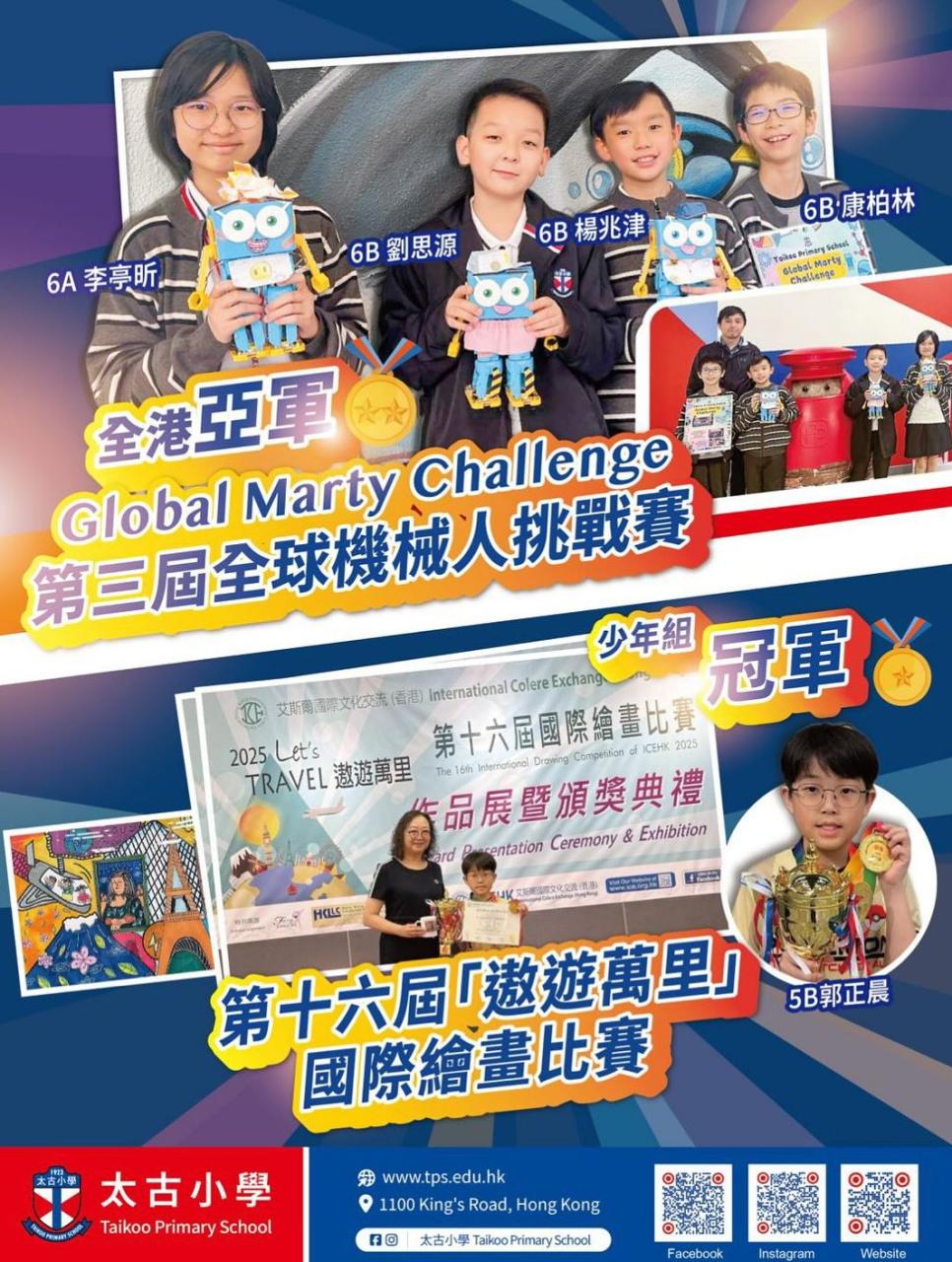 上學期,本校學生於不同學術範疇表現出眾,於多項國際性及全港性比賽中取得佳績 ,讓我們一起為太古小學同學們鼓掌!