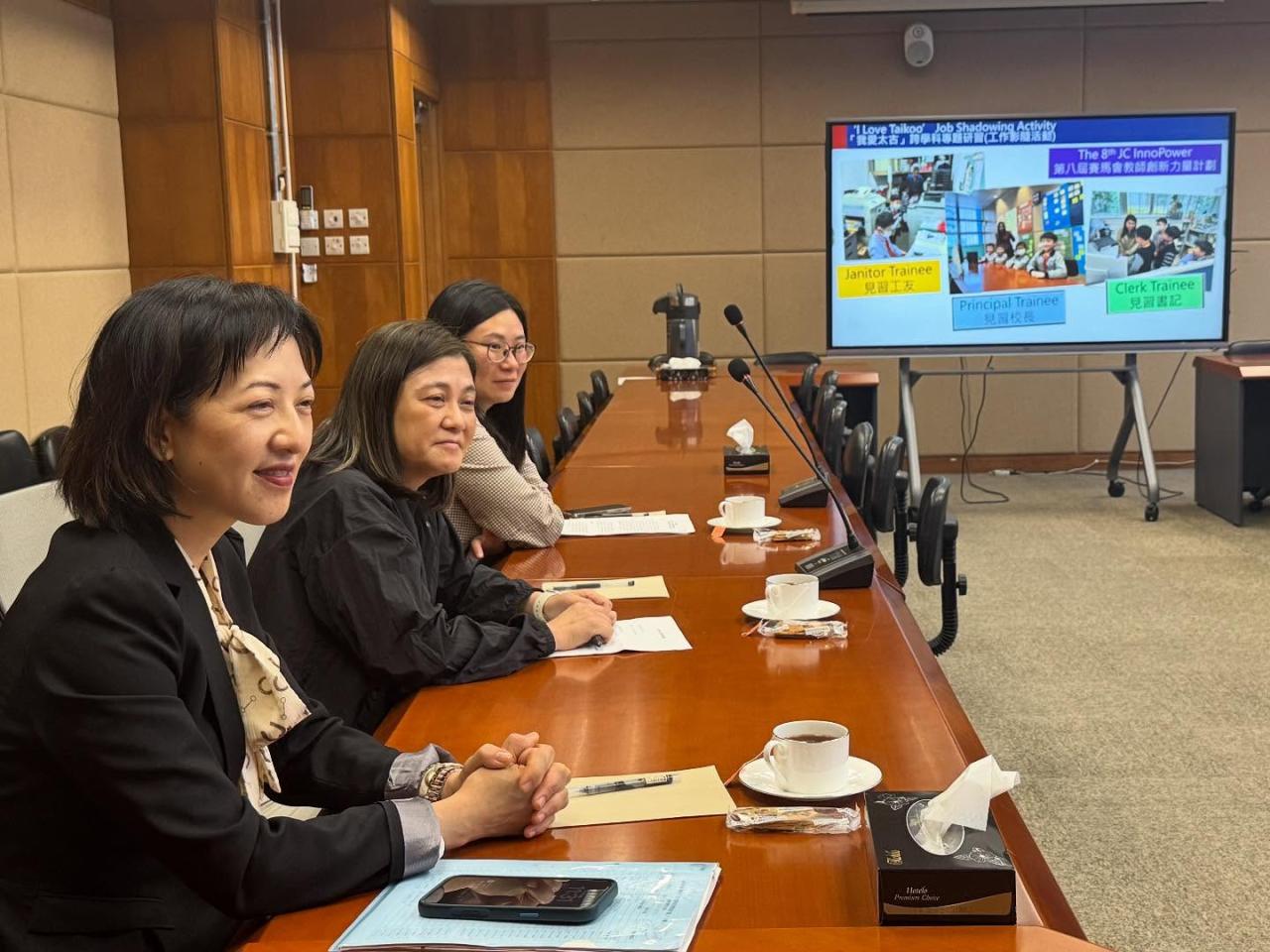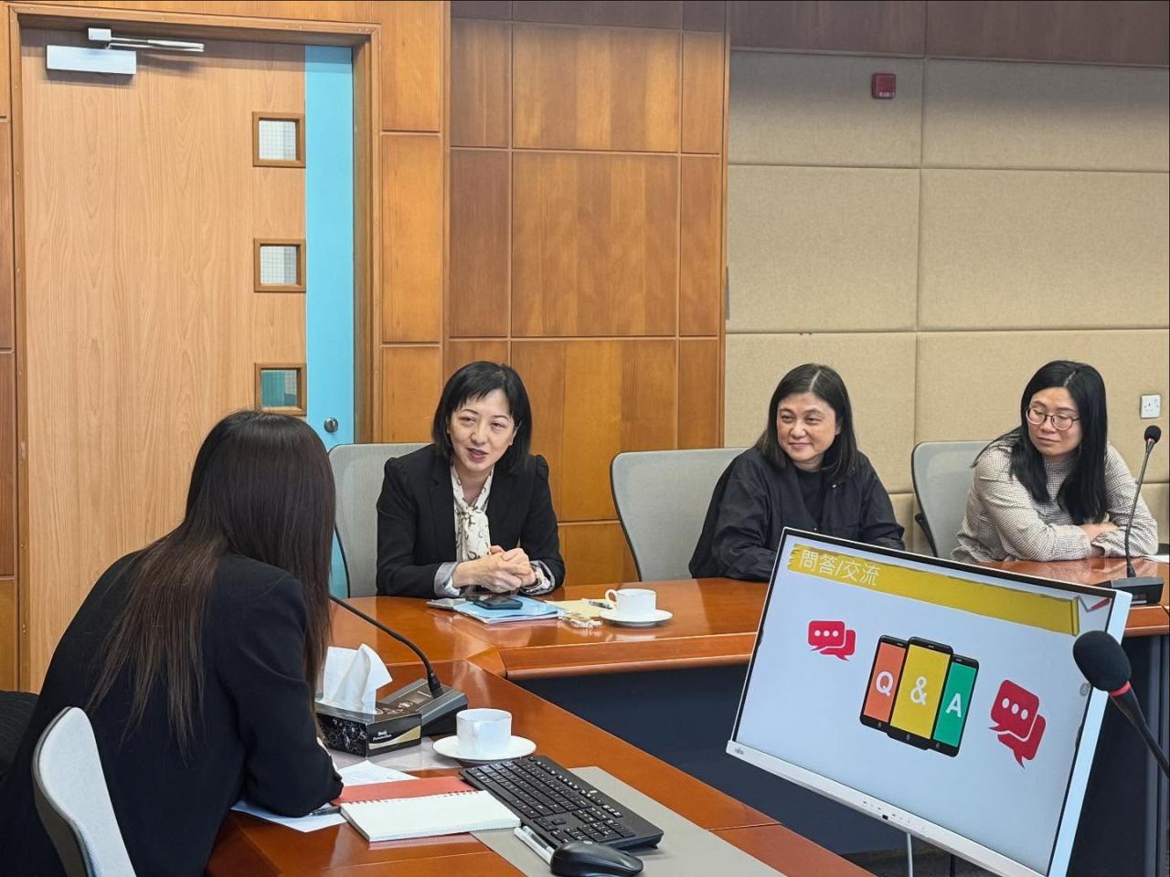 東區及灣仔區福利專員蕭建香女士、助理福利專員侯雪芬女士以及助理社會工作主任林溢暉女士於10月27日(星期一)到訪本校,與葉校長就精神健康教育作交流,並與學生見面及參觀校園。