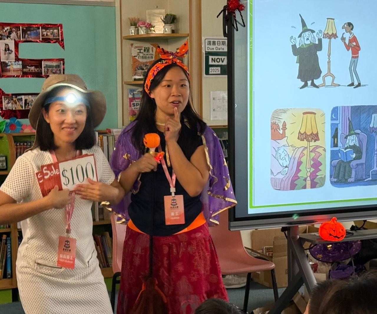 為了讓學生感受節日的歡樂氣氛,並享受閱讀的樂趣,圖書館與故事爸媽義工於10月22日(星期三)、10月23日(星期四)、10月28日(星期二)及10月30日(星期四)舉行了4場萬聖節故事特別場,分別是《眼鏡兔》、《怪物一家》、《閣樓房間裡的搗蛋鬼》及《壞脾氣的魔女餐桌》。