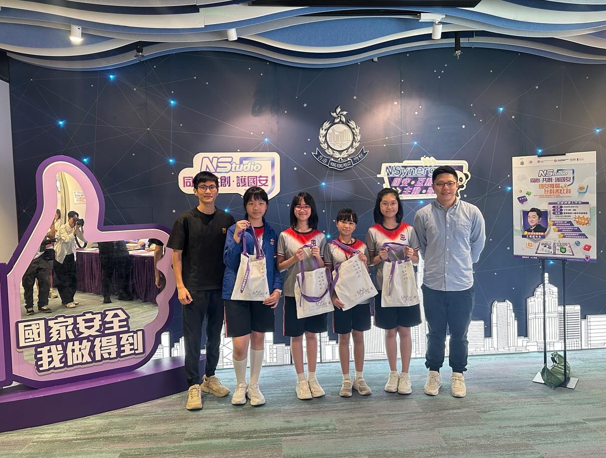 6A陳浠茹、李亭昕、方詩維及6B梁芷穎早前代表本校參加由香港警務處主辦的NStudio「同心·共創·護國安」國安推廣計劃書比賽。經過兩輪比賽後,隊伍成功晉級稍後舉行的總決賽。