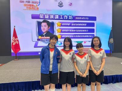 四位同學於4月17日(星期五)前往香港警察總部,參加由王祖藍先生主講的演說技巧工作坊。這次活動幫助她們提升了台上表達的技巧與自信,為接下來的決賽做好準備!