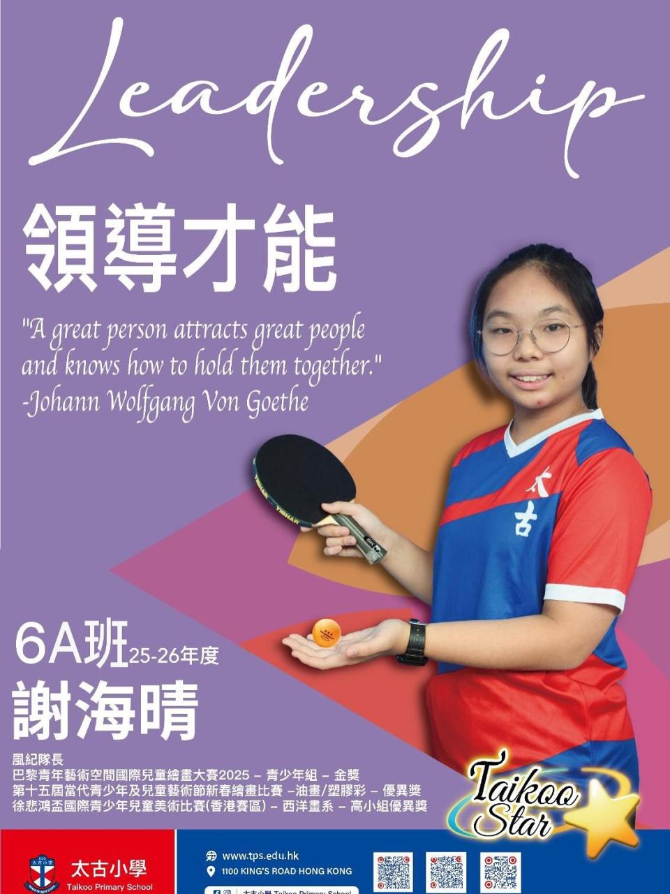 以下獲選成為Taikoo Star的同學於生活中展現出色的領導能力及團隊合作精神,無私地貢獻學校及社區,值得鼓勵。